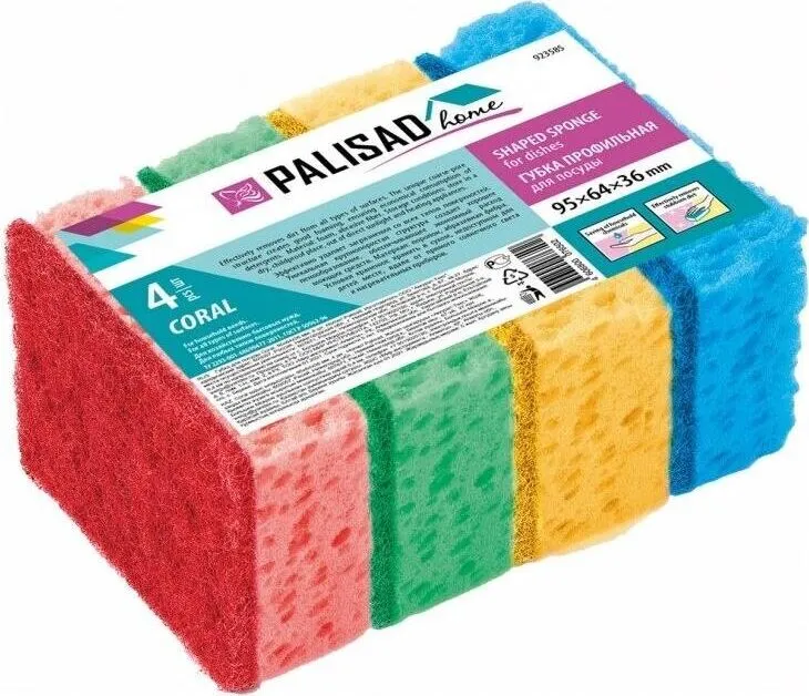 Губки для посуды PALISAD CORAL, 95X64X36 мм, 4 шт., 923585 — отзывы