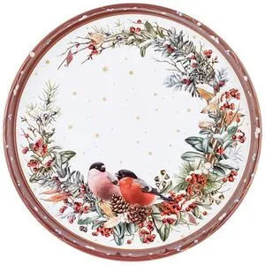 ПОДНОС СЕРВИРОВОЧНЫЙ AGNESS КОЛЛЕКЦИЯ "СНЕГИРИ" КРАСНЫЙ 33*2,1 СМ, 898-237, СТАЛЬ
